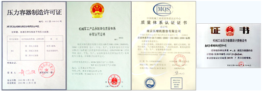 南京压缩机股份有限公司视质量为企业的生命,制定和实施了“质量否决权”等一系列质量保证制度,公司具备压缩机生产许可证、压力容器设计许可证、压力容器制造许可证、ISO19001:2000标准体系认证、军工产品质保体系等资质,多次被评为省市质量管理先进企业。