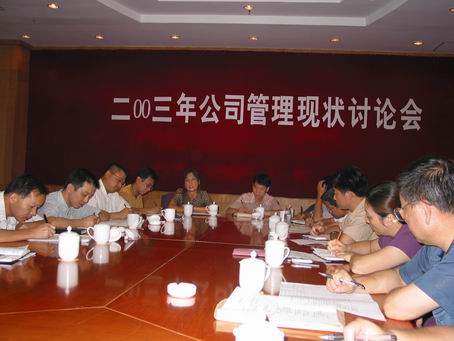 南京顺风-派尼尔空气和气体净化设备有限公司倡导“学习型”企业的管理理念,公司员工定期举办讲座和学习交流活动,不断找出公司技术、销售、生产等各个环节中出现的问题,及时制定改进,提高措施。图为2003年9月公司召开的“2003年公司管理现状讨论会”。